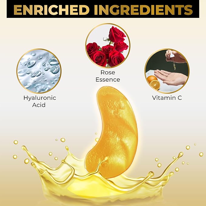 - ADD THEM TO YOUR SKIN CARE ROUTINE: Infused with skin-loving ingredients like hyaluronic acid, collagen, vitamin c, and rose essence, they offer noticeable results, helping to smooth fine lines, reduce puffiness, and restore a youthful glow.