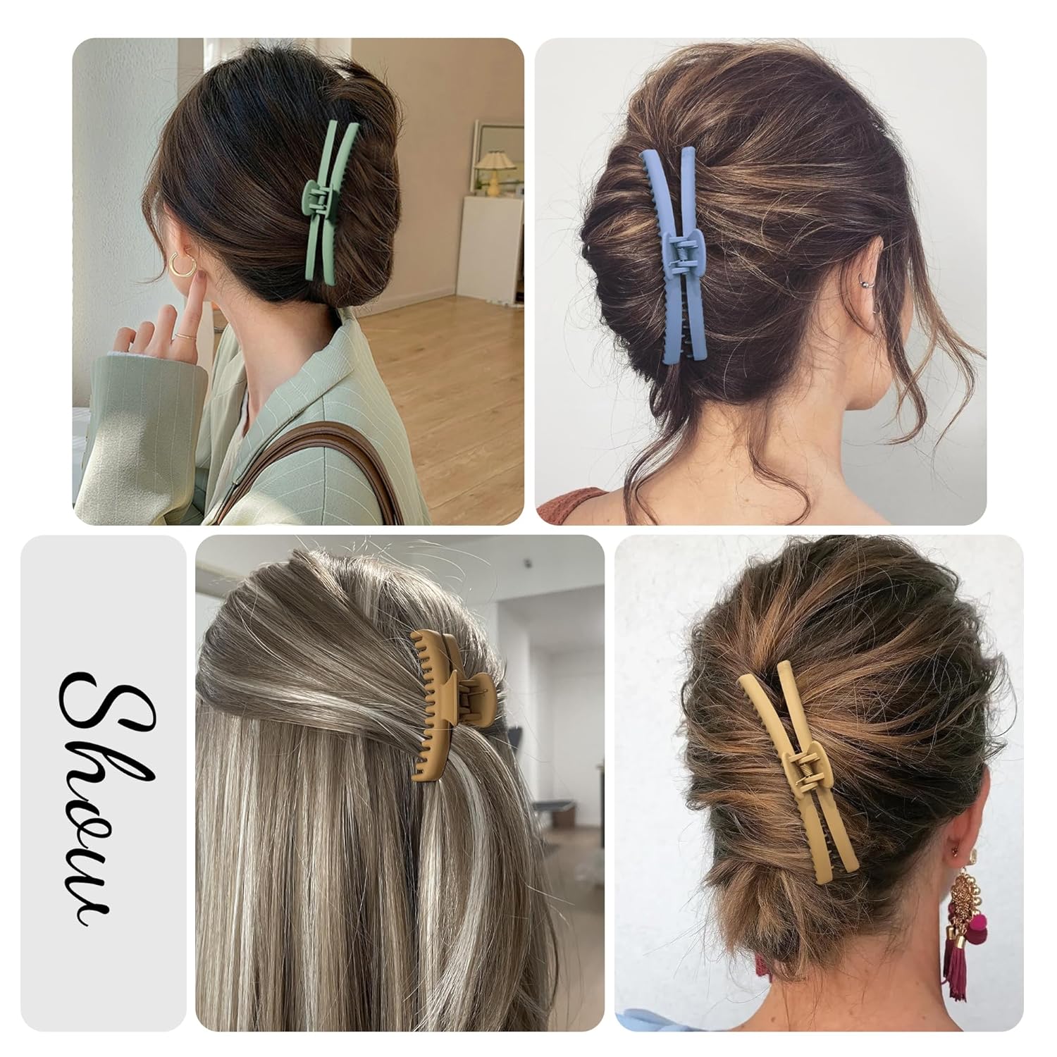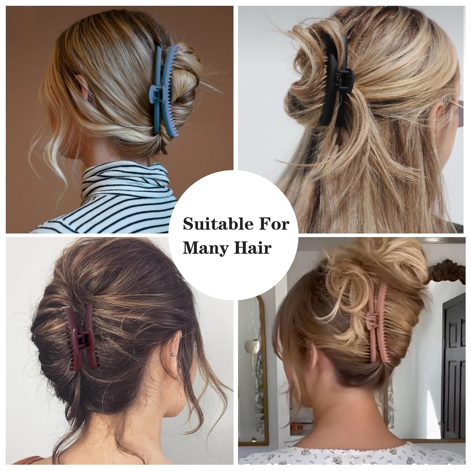 - ONE SIZE FITS ALL HAIR:The large claw clip is long enough to fit for any hair type, such as thick, thin, curly, straight, wavy, long or fine hair. And the weight of the clip is very light, holding the hair in place, and wearing it all day will not cause headaches.