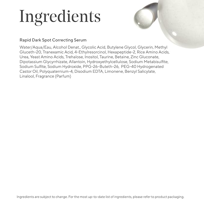 - Dark Spot Correcting Serum use dark spot fading antioxidants + Patented Rescorcinol Technology correct uneven tone and reduce the look of dark spots