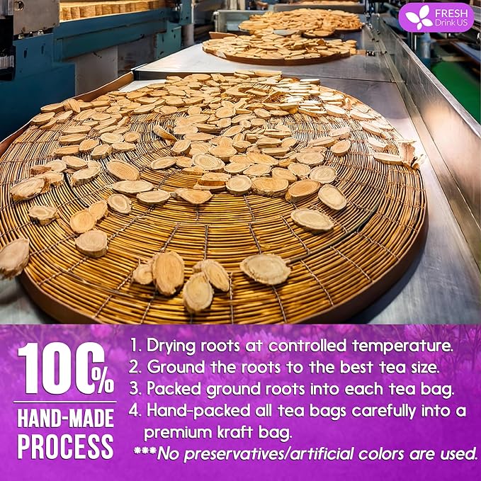 - ☘️ HAND-MADE PRODUCING PROCESSES, NO ADDITIVES: Our Astragalus root were processed in a hygienic environment, and then packed in a Re-sealable bag to make a long self-life product, ensure the safety of customers and quality of products. Sugar-Free, Caffeine Free, Gluten Free, Vegan, No Artificial Flavors, No Colors Added.