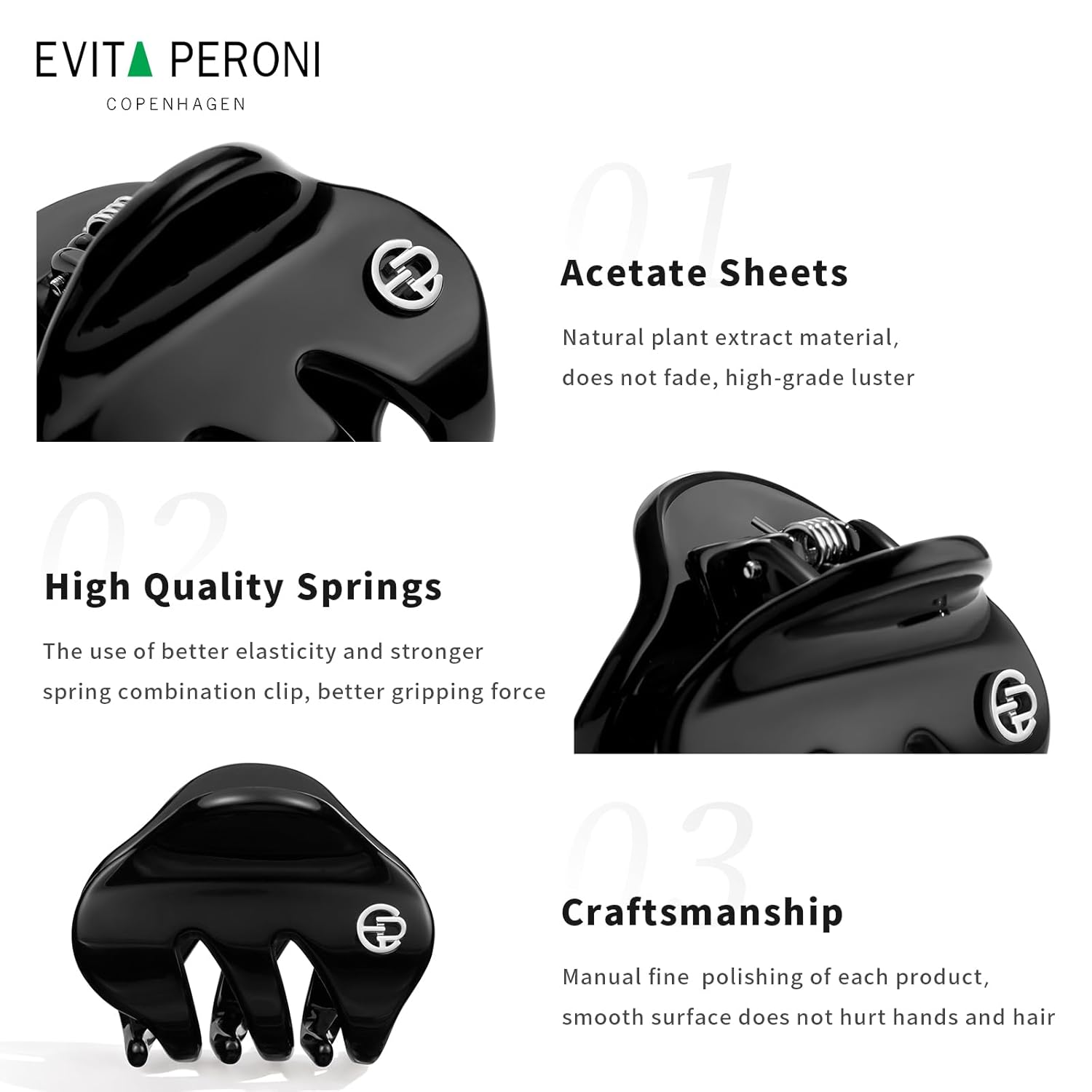 - Small Hair Clips: EVITA PERONI small claw clips are crafted with premium natural acetate sheets and high quality durable springs for long-lasting strength and a firm grip. The hair clip measures 1.48*1.10*1.26 inches