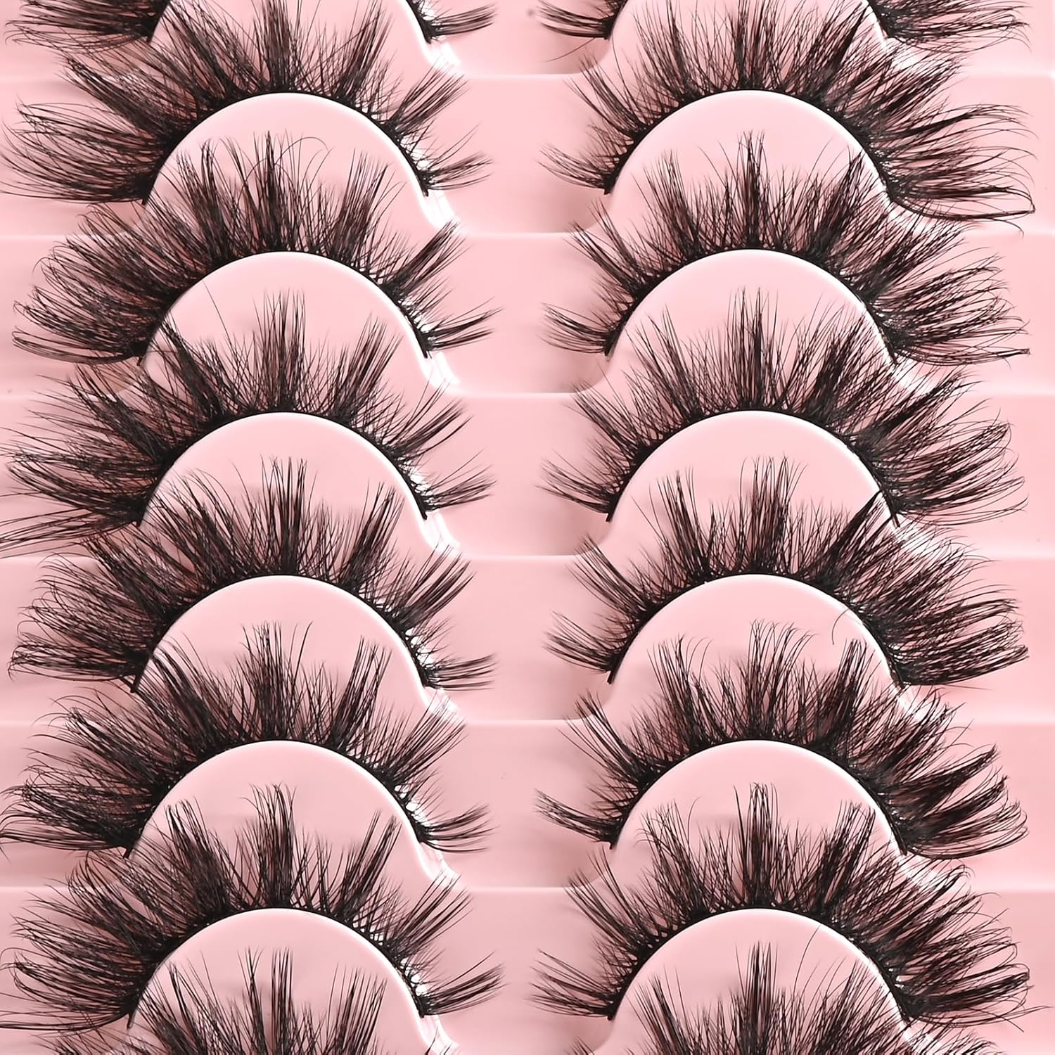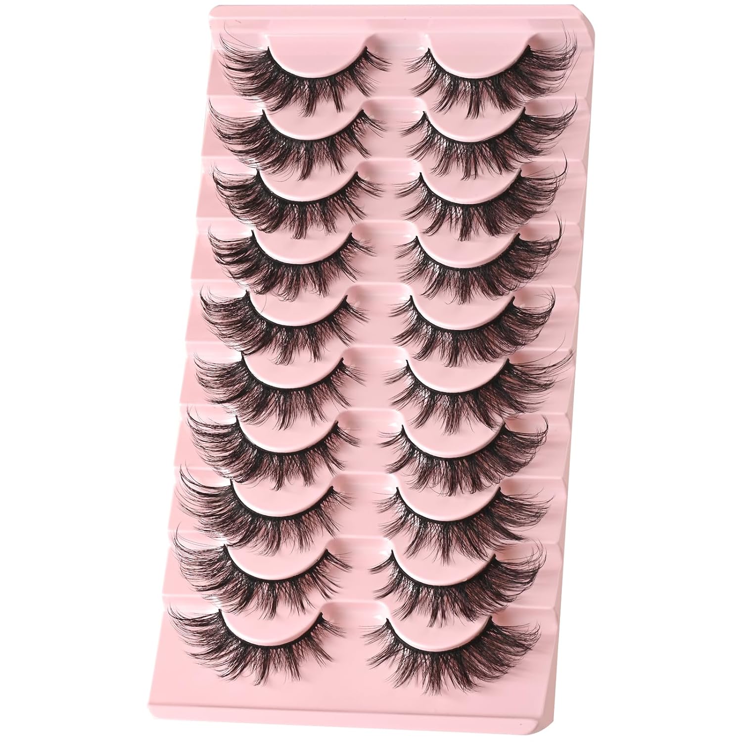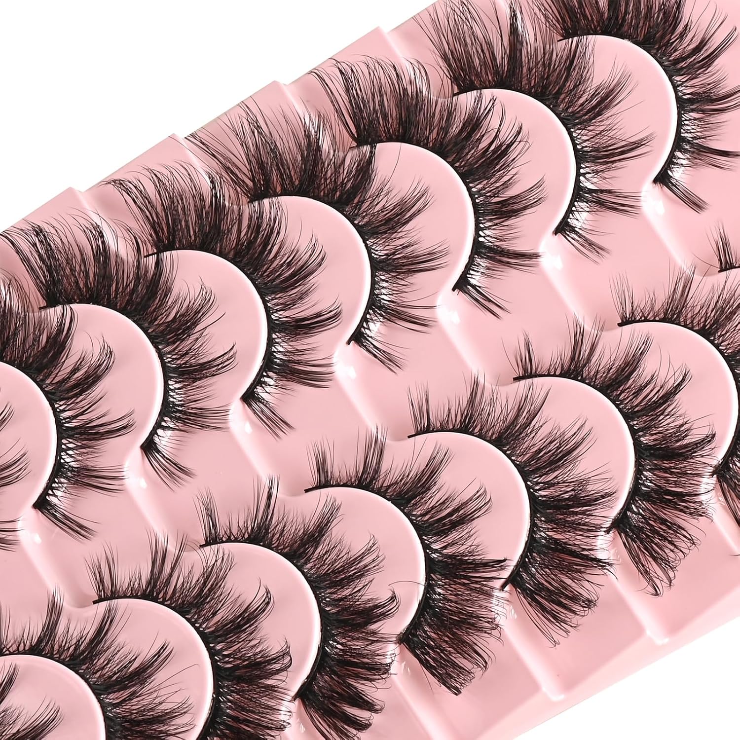 FARRED Natural Lashes Wispy False Eyelashes Fake Cat Eye Lashes Pack 10 Pairs Natural Look Lash Strips Fluffy Mink Eyelash Full Strip Lashes (C2 | 8-16MM)