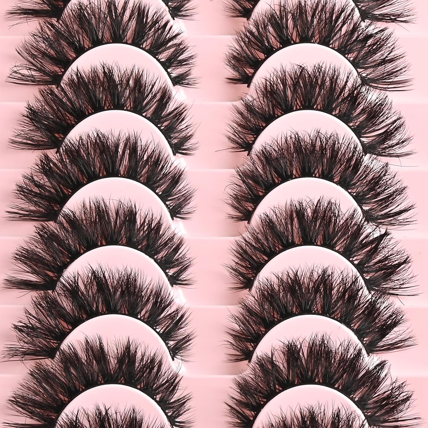 FARRED False Lashes Natural Strip Eyelashes 14mm Wispy Cat Eye Lash Strips Full Volume Mink Eyelash Pack Natural Look 10 Pairs Thick Fluffy Mink Russian Pestañas Postizas for Women