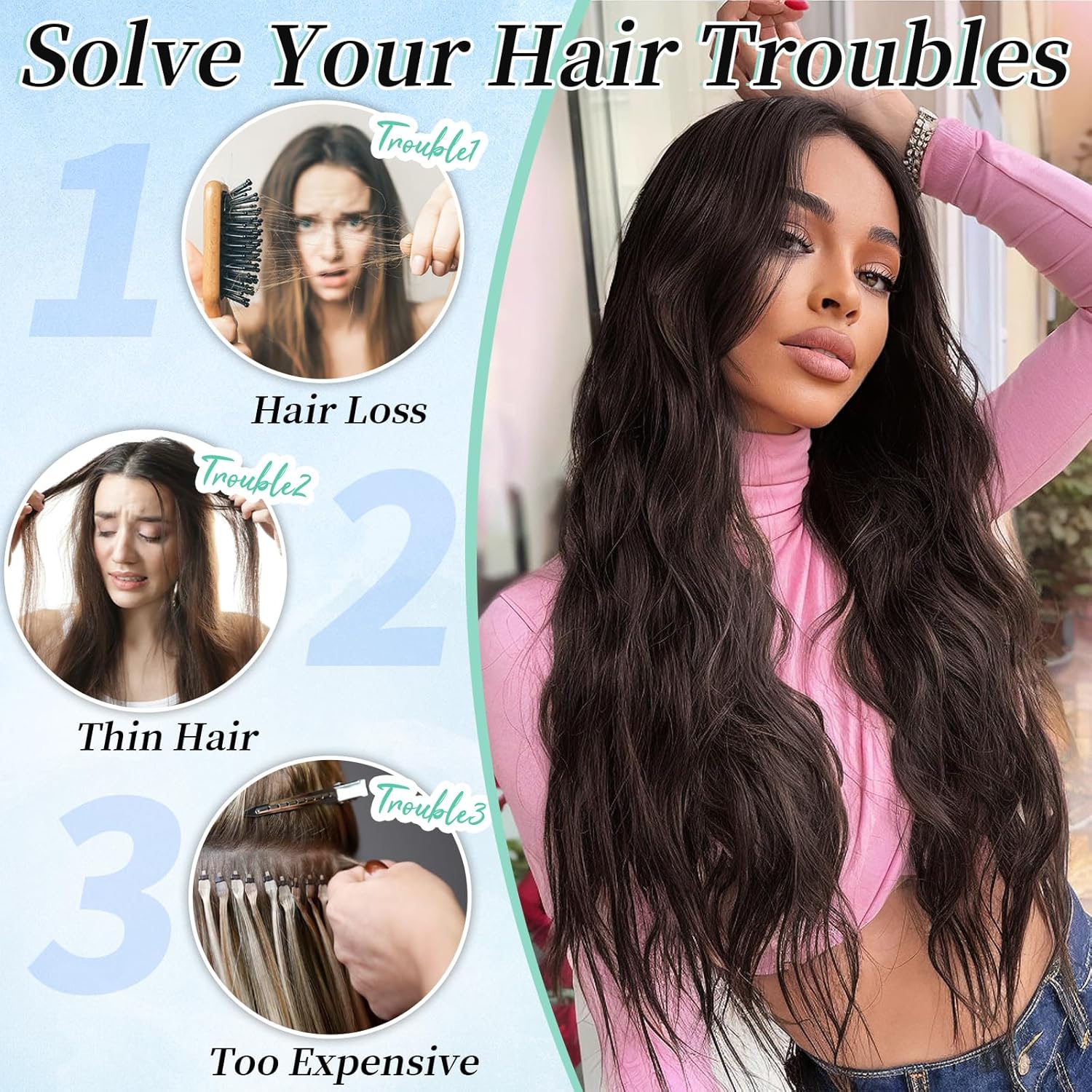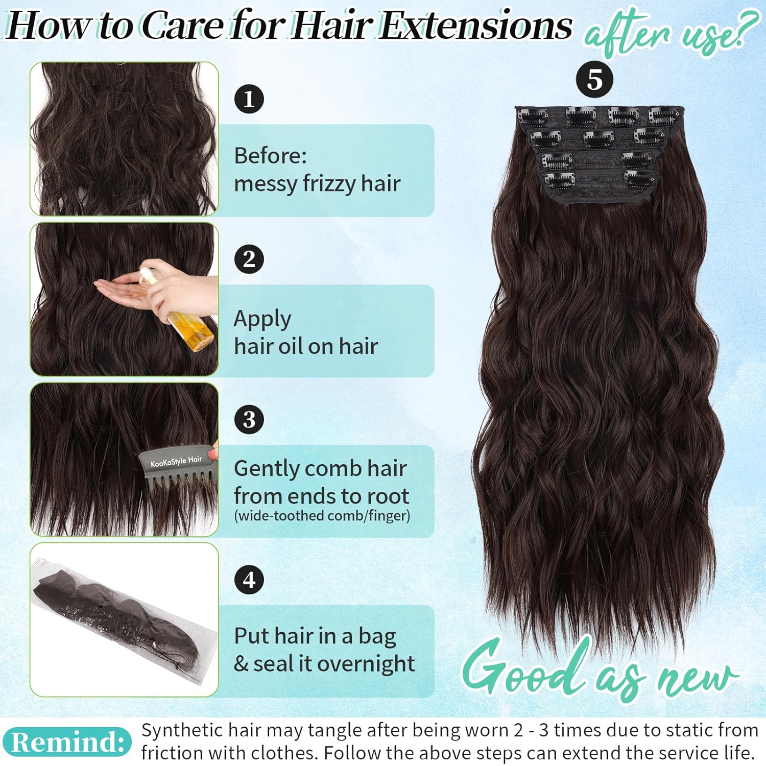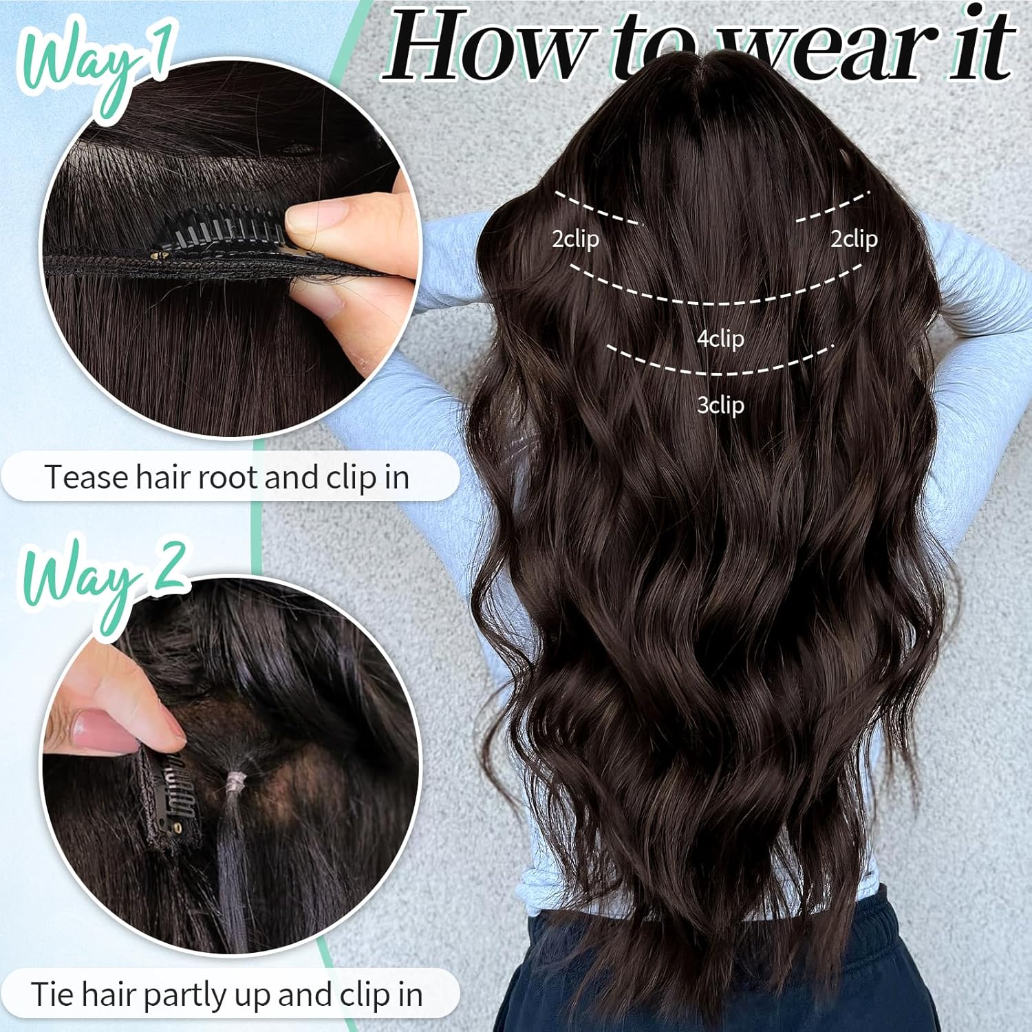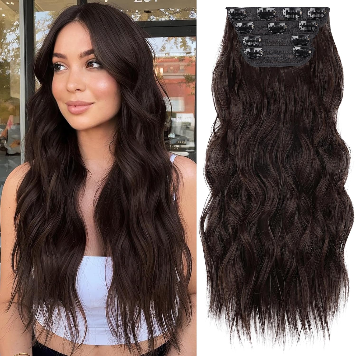 KooKaStyle Clip in Synthetic Hair Extensions Long Wavy 4PCS Thick Hairpieces Chocolate Brown 33Y# Fiber Double Weft Natural Hair Extensions 20 Inch for Women