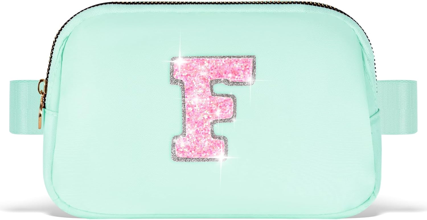 Fanny Pack Belt Bag Crossbody Bags with Initials Letter Patch Trendy Stuff for Teens Cute Stuff Birthday Gifts for Teenager Girls - F,Light Green Bag
