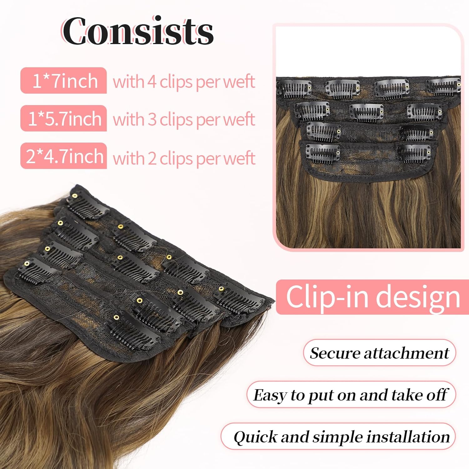 KooKaStyle Clip in Synthetic Hair Extensions Long Wavy 4PCS Thick Hairpieces Balayage Chocolate Brown to Caramel Blonde 10H26 Fiber Double Weft Natural Hair Extensions 24 Inch for Women