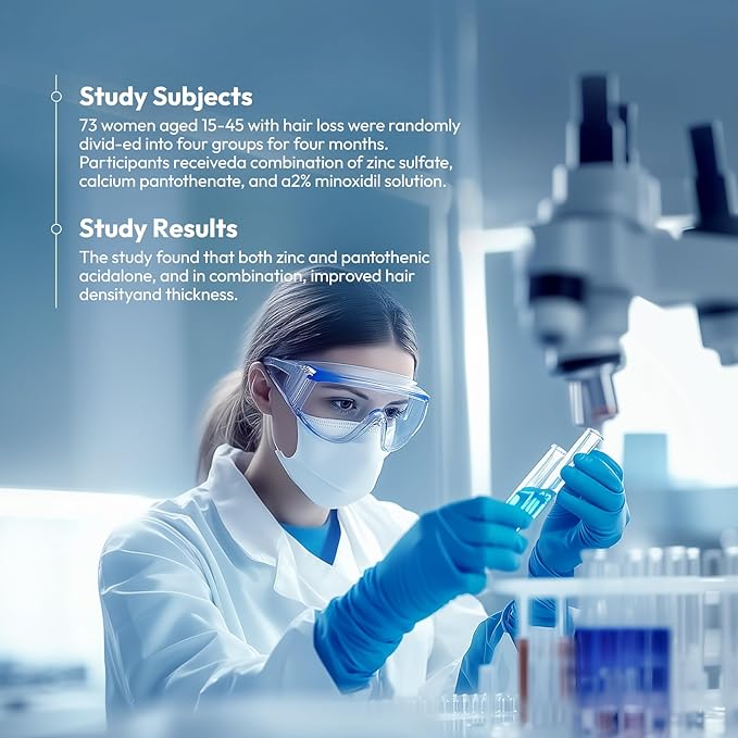 - Comprehensive Hair and Skin Benefits: Our scientifically backed formula provides 10,000 mcg of Biotin to stimulate hair growth, Zinc for healthy nails, Vitamin C for youthful skin, and Calcium Pantothenate to support hair thickness and combat hair loss.