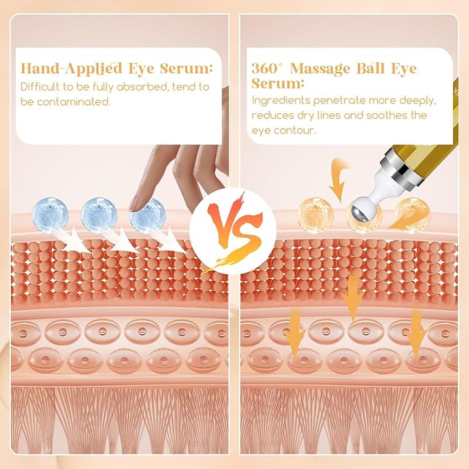 - De-Puffing Action: The unique 360° massage ball applicator helps reduce eye bags and wrinkles while improving circulation around the delicate eye area.
