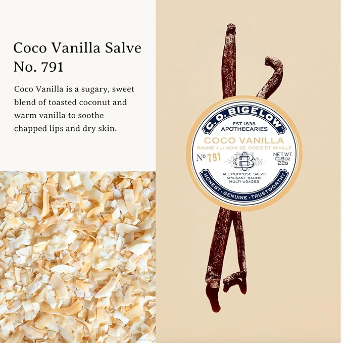 C.O. Bigelow All Purpose Salves, Variety Pack of 3 Lip Balm Tins for Chapped Lips & Dry Skin, Coco Vanilla, Apple, Herbal Mint Moisturizing Lip and Skin Salves, 0.8 oz each