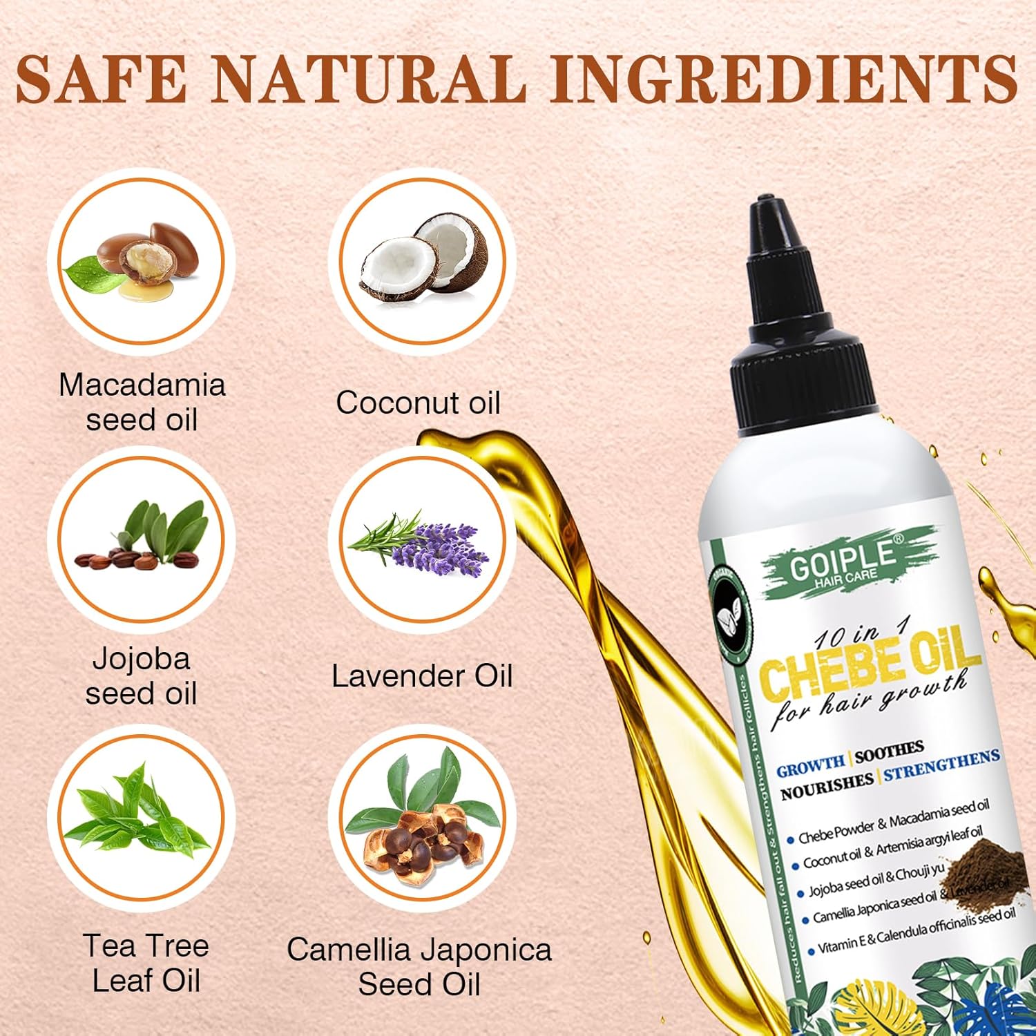 - Deep Nourishing Formula: Our chebe oil has been infused with high-quality chebe powder, known for its powerful hair growth properties. It deeply nourishes each strand, promoting thicker, fuller curls
