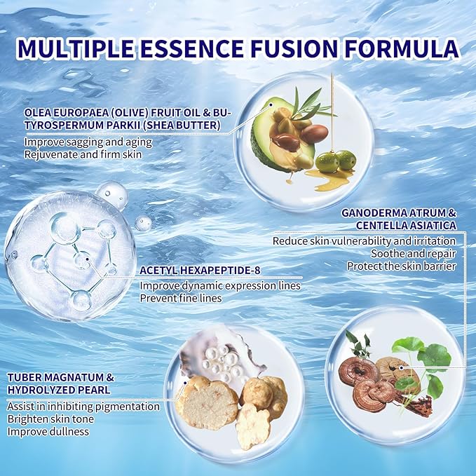 - 【Skin Type & Effect】: Suitable for all skin types, and the skin care kit contains ginseng, carnosine and various nutrients, which can moiturizes facial skin, nourishes skin base and improves roughness and dryness.