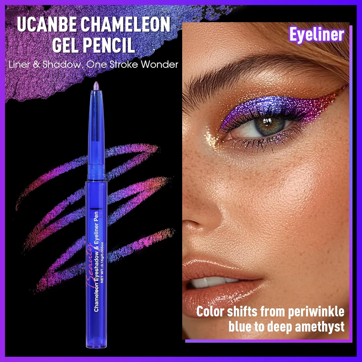 UCANBE Chameleon Eyeshadow & Eyeliner Gel Pencil-Multichrome Shifting Colors Metallic Glitter Eye Makeup,Waterproof Long-Lasting Smudge-Proof Multi-Dimensional Color (Periwinkle Blue to Deep Amethyst)
