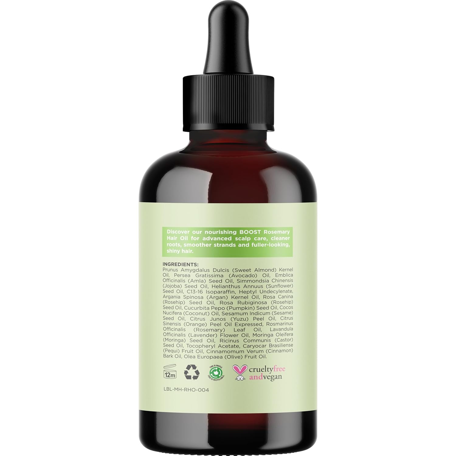 - Unique BOOST Complex - Forget cheap fillers and embrace the richness of our rosemary scented hair oil for dry scalp & thinning hair with premium nourishing oils like Argan Moringa Rosehip and Sesame