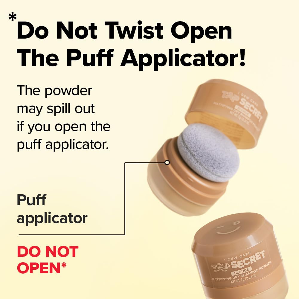 - ABOUT Tap Secret Blonde: Your Grease-Busting Companion - Introducing Tap Secret Blonde, the benzene-free ultra-fine dry shampoo powder in a 7g / 0.24 oz. tub. This hypoallergenic, non-aerosol gem is your guilt-free solution for instantly fresh hair.