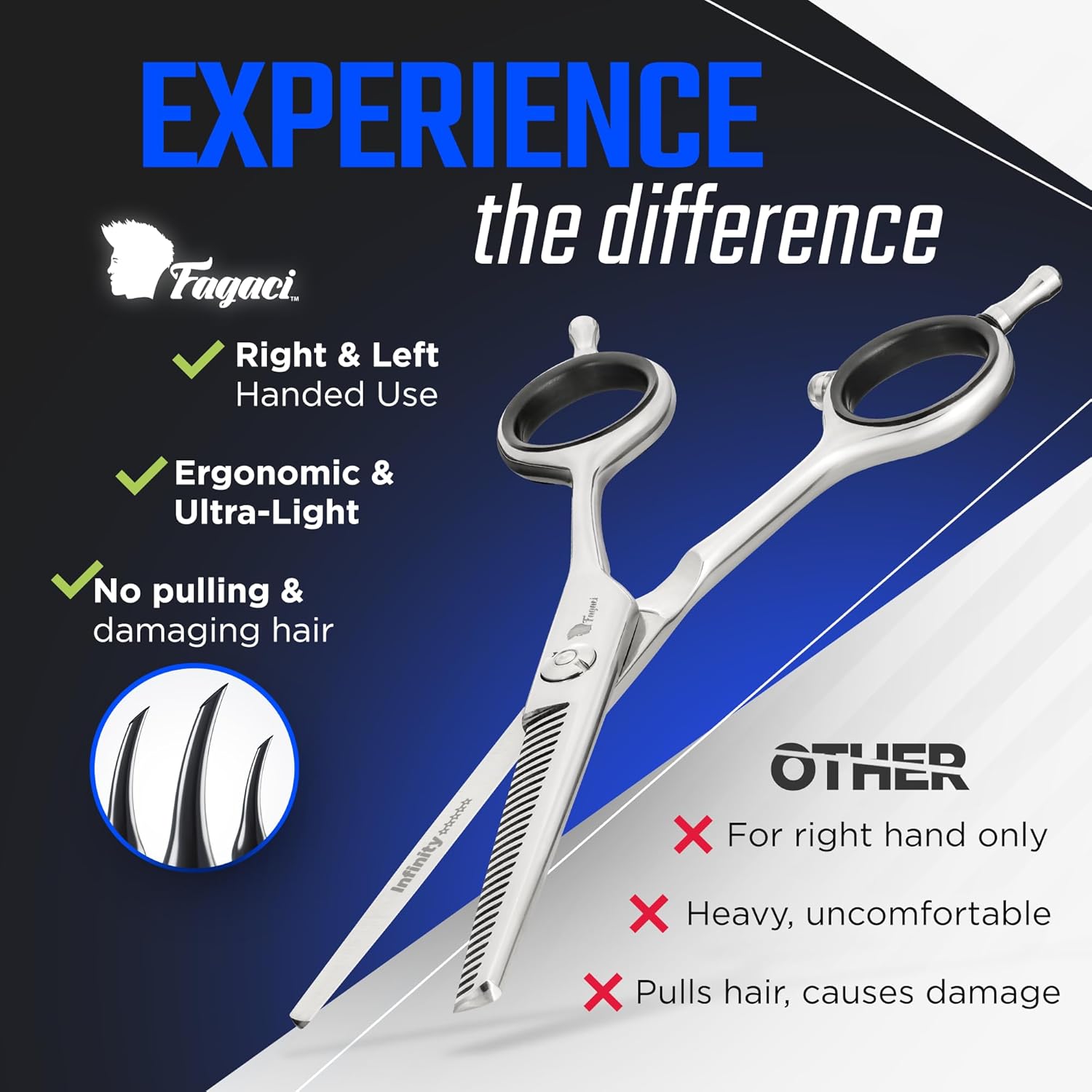 - LEFT & RIGHT HAND USE - Fagaci Infinity hair thinning shears for women boast a meticulously balanced design, comfortably fitting both left and right hands. Perfect for versatile applications.