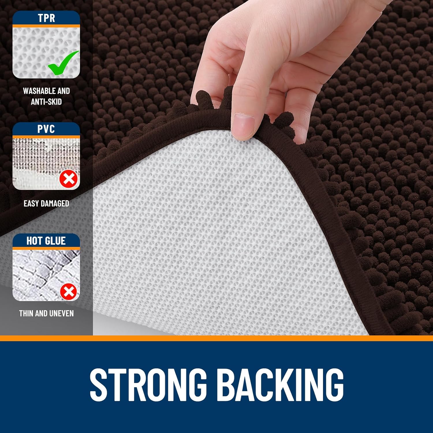 OLANLY Bathroom Rugs 45x27, Extra Soft Absorbent Chenille Bath Rugs, Rubber Backing Quick Dry, Machine Washable Bath Mats for Bathroom Floor, Tub and Shower, Home Decor Accessories, Brown