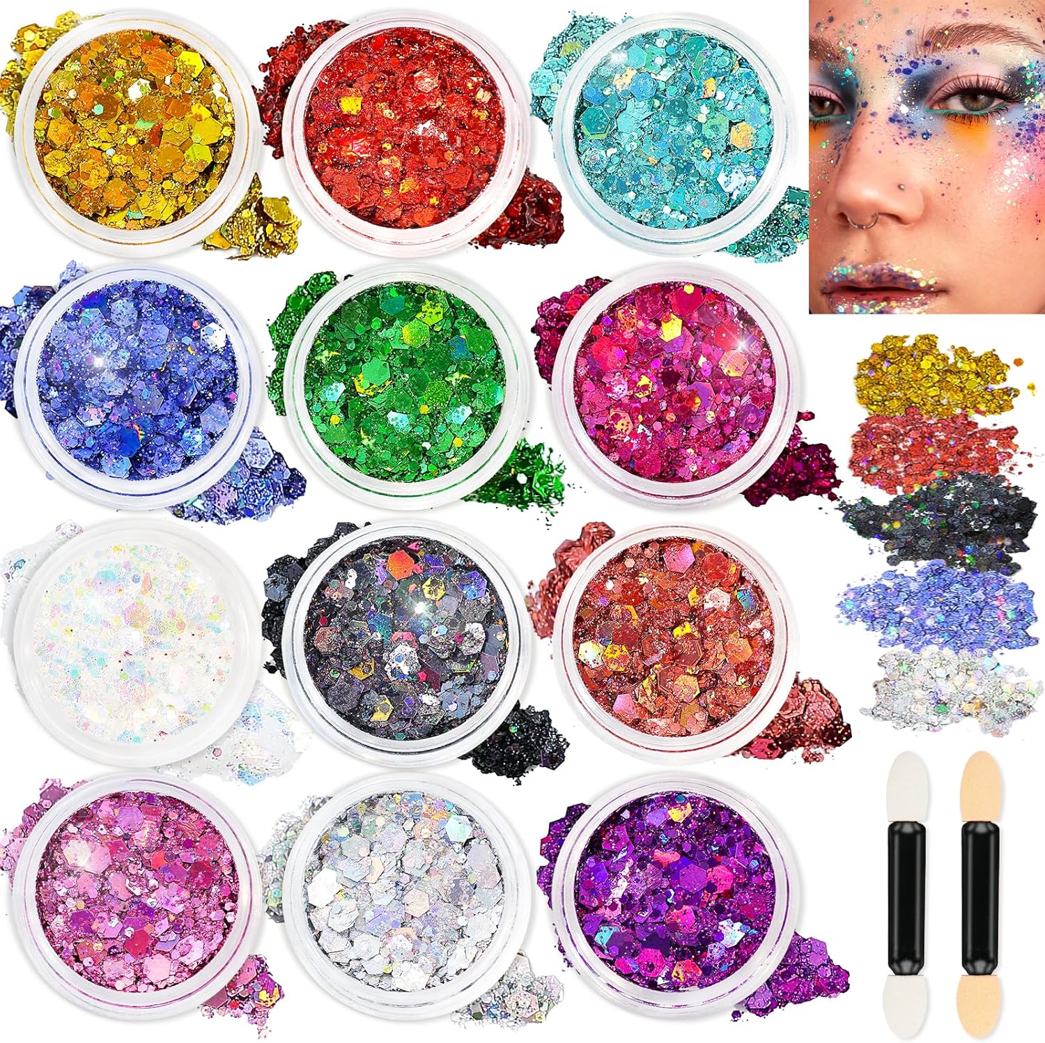 - 12 Bright Colors Body Glitter: Every color of gel has a super high glitter, no extra glue is needed, our glitter gel is quick to use, and the laser glitter releases a dazzling glow under the light. Make you the center of attention and add a bright visual effect to your work or makeup