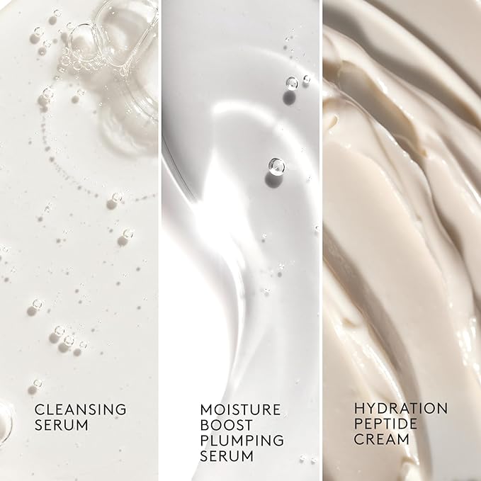 - What’s Included: Full-size Hydration Peptide Cream delivers up to 72 hours of skin hydration without congestion; Moisture Boost Plumping Serum attracts, retains and replenishes moisture for instant and continuous plumping hydration; Cleansing Serum helps melt away face makeup and impurities without stripping skin