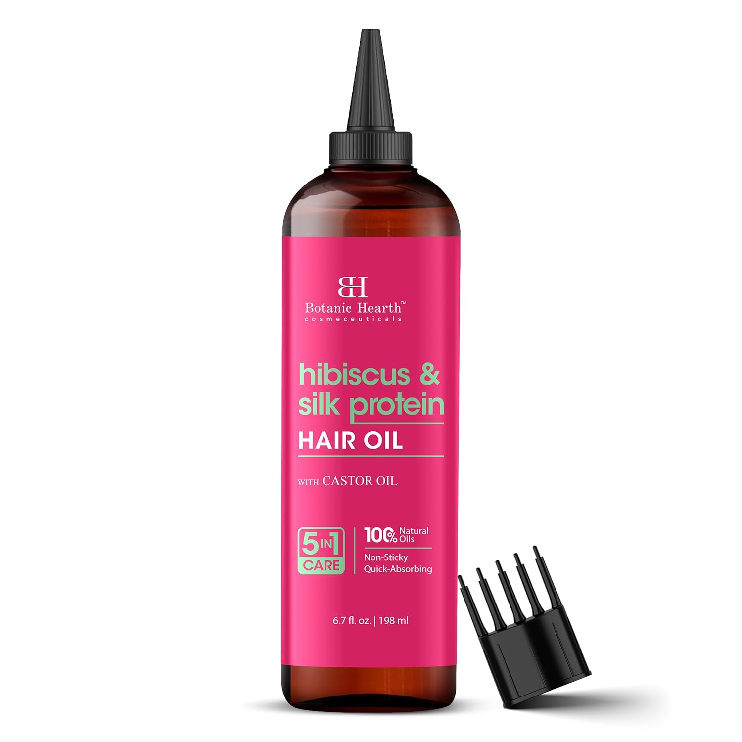 Botanic Hearth Hibiscus & Silk Protein Hair Oil (6.7 Fl Oz) |Nourishing And Strengthening Hair Treatment For Thicker, Healthier|Looking Hair | Paraben Free | Suitable For All Hair Types