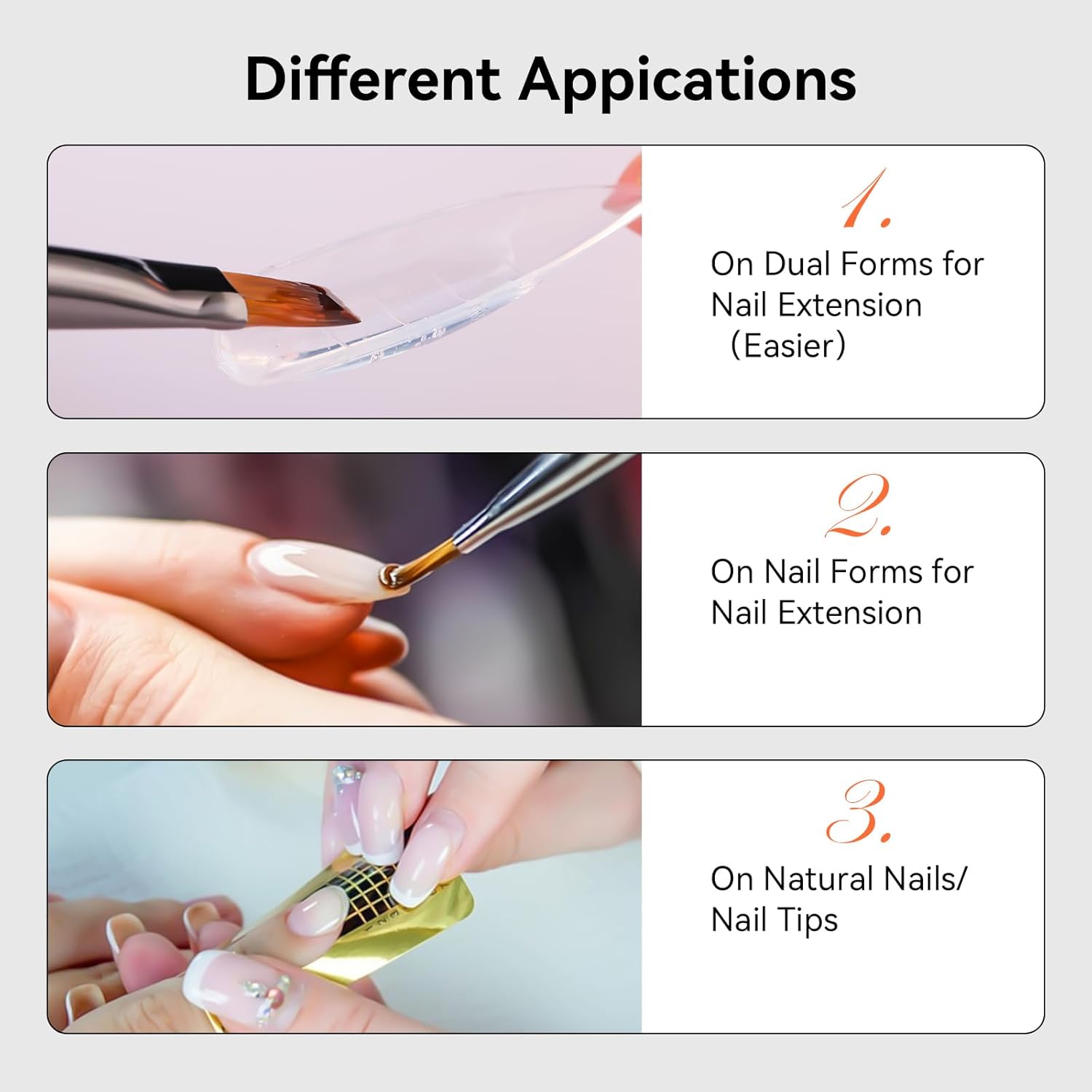Makartt Clear Gel Builder Kit: Self-Levelling, Long Lasting Extension Hard Gels for Strengthener, Broken Nails Repair Gel Kit with Paper Forms, Dual forms, Nail File and Dual-End Brush 1.06 oz