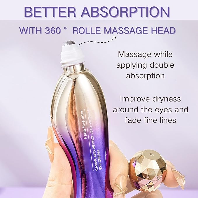 - 【Relaxing Cooling Roller】The eye night cream for women anti aging comes with a 360° massage ball that provides a soothing massage experience and helps to effectively absorb serum.This makes the eye cream for dark circles and puffiness a ideal self-care product, ideal gift for women,teen girls gifts