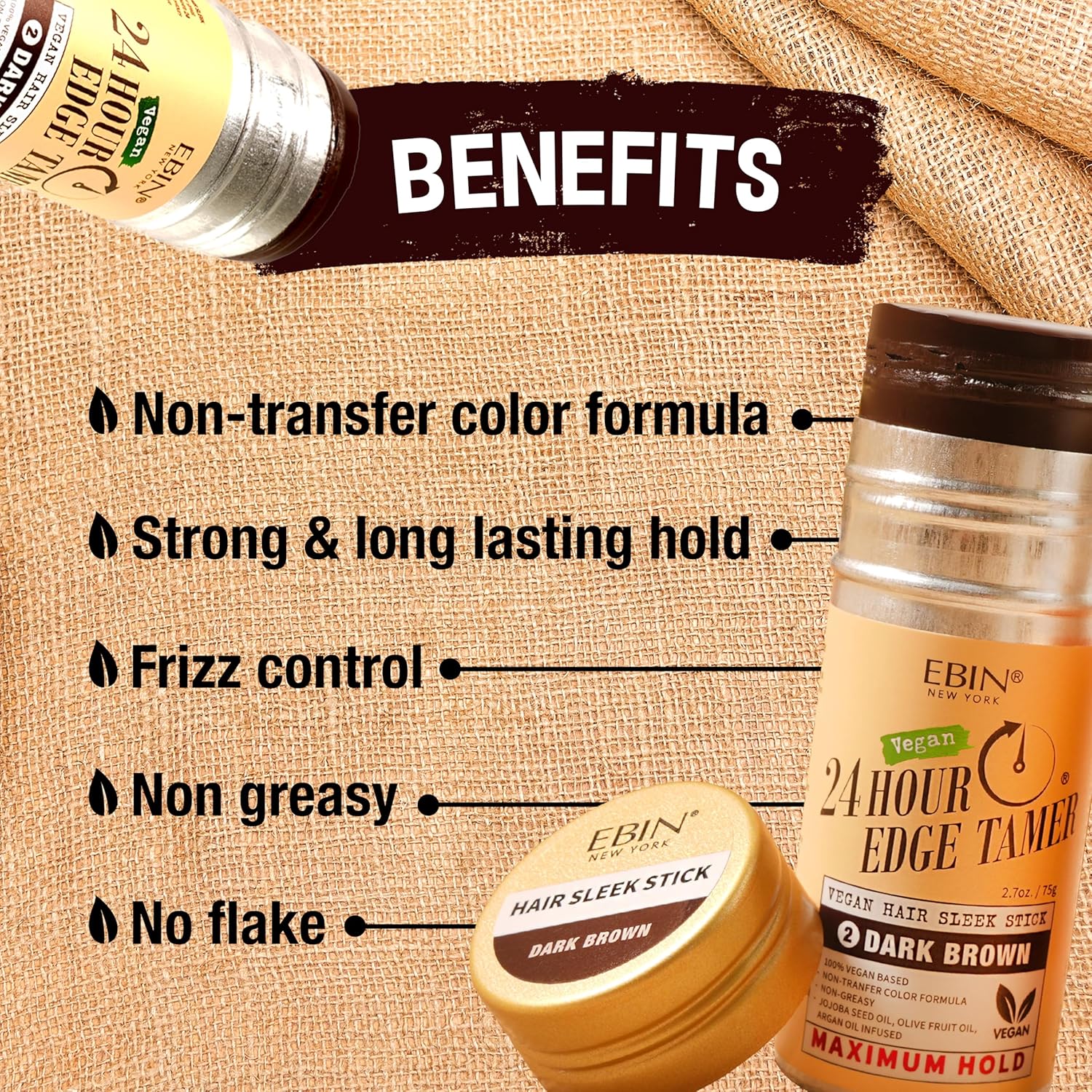 EBIN NEW YORK 24 Hour Edge Tamer Vegan Hair Sleek Stick Dark Brown Maximum Hold