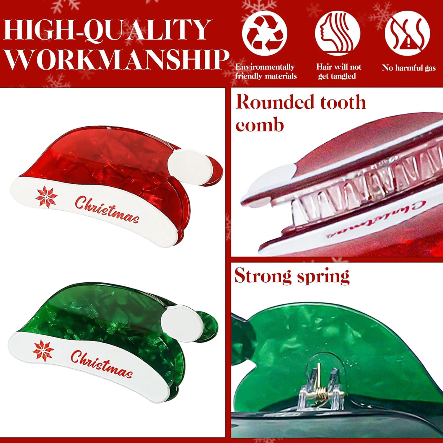 - Easy to carry: These Xmas claw clips are of moderate size and are very suitable for most adult women to wear. Moreover, hair claw clips are lightweight and compact, making them easy to wear and carry