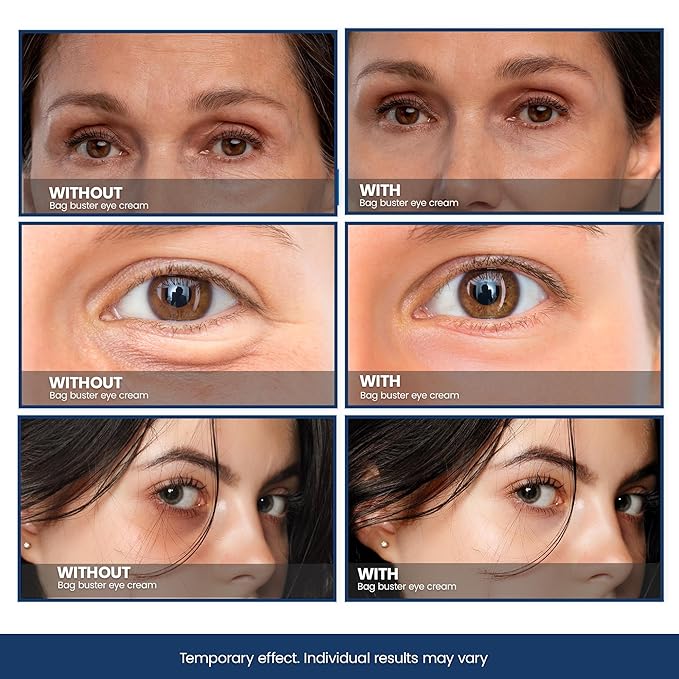 - Bag Buster Advanced Anti-Aging cream works wonders on Under eye bags, Puffy eyes, Wrinkles, Crow’s feet, Fine lines, Smile lines, Under-eye Puffiness and much more. Instantly firms and smoothens the skin for more youthful appearance.
