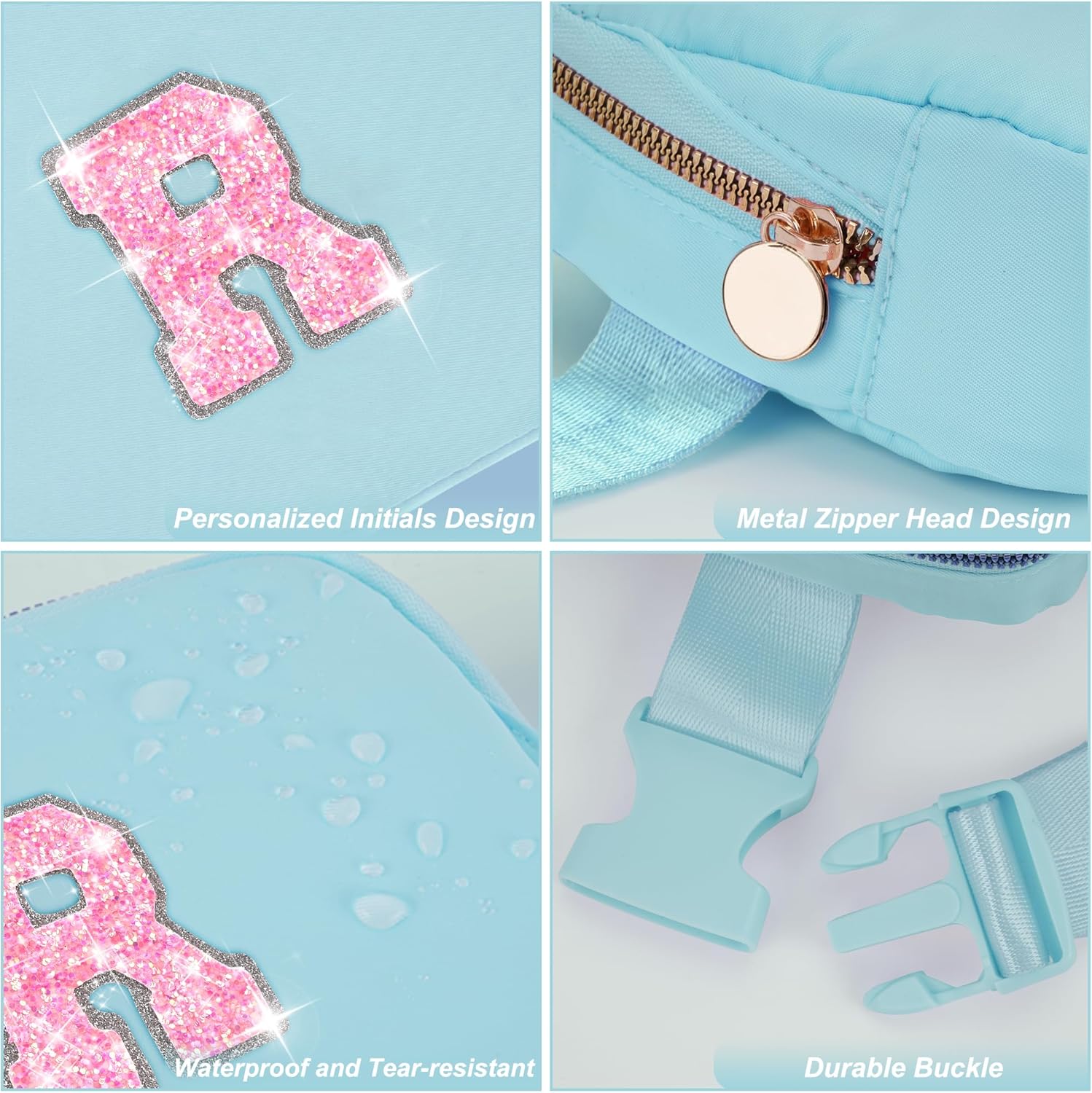 - HIGH QUALITY MATERIAL: Made of waterproof nylon material,but please do not immerse it in water.This fanny bag is designed with a round metal zipper head and personalized initials for a stylish and elegant look