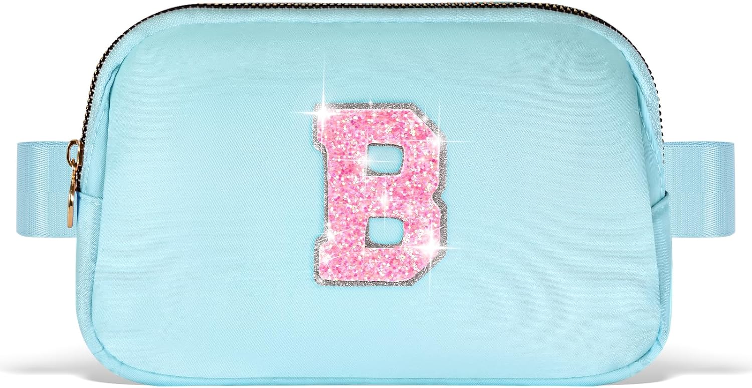 Fanny Pack Belt Bag Crossbody Bags with Initials Letter Patch Trendy Stuff for Teens Cute Stuff Birthday Gifts for Teenager Girls | B,Blue Bag