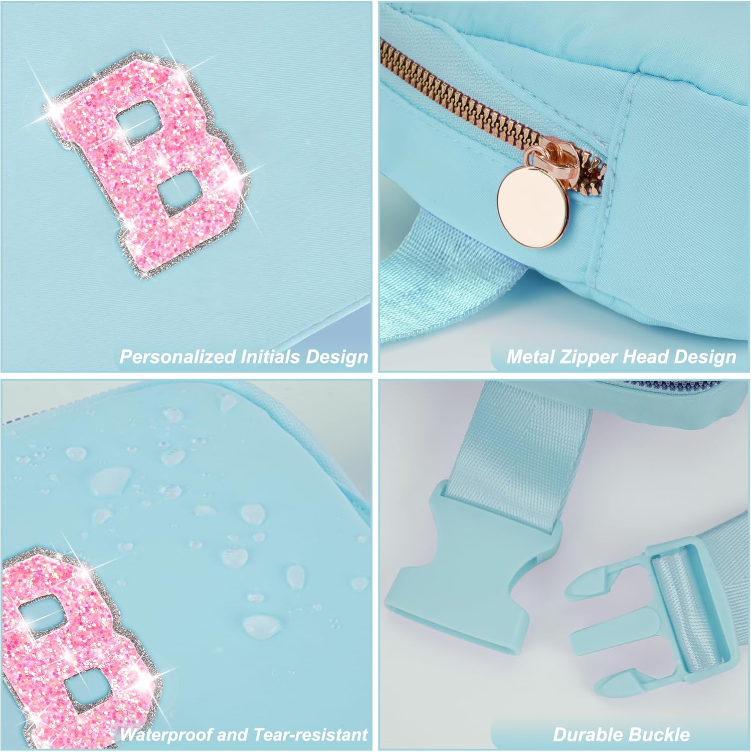 - HIGH QUALITY MATERIAL: Made of waterproof nylon material,but please do not immerse it in water.This fanny bag is designed with a round metal zipper head and personalized initials for a stylish and elegant look