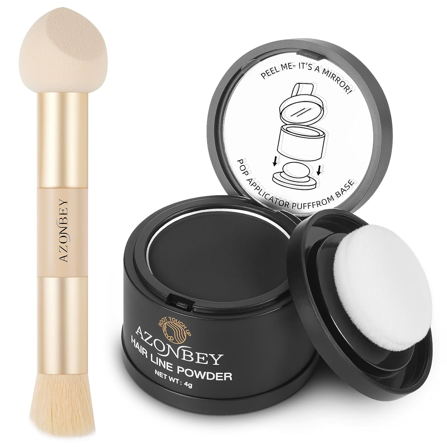 - 4.The Azonbey Root Cover Up Powder And Brush: This hairline powder works wonders on roots for women and men, providing an instant hair touch up powder for roots .It's an essential hair color powder root touch up for anyone needing quick and effective coverage. You can use your finger or our Beauty Brush Make it Simple and Useful.