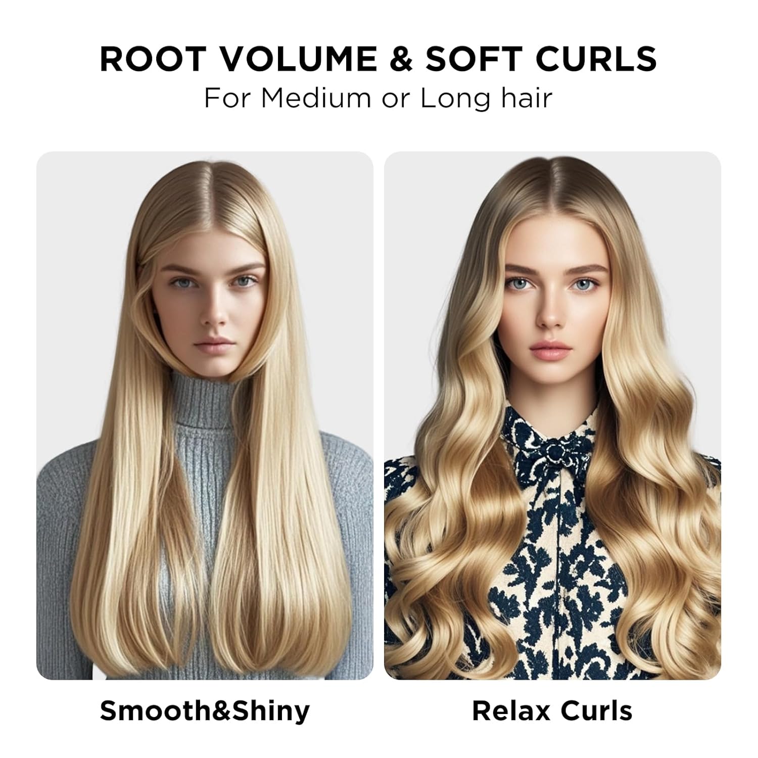 - Curling Iron and Brush in One: The unique NOT BLOW AIR curling brush is designed with thermal bristles that can grab and gently glide through hair, helping to wrap the hair around the barrel for smooth styling. Ideal for creating loose curls, voluminous looks, and gorgeous bangs. Notice: This isn't a blow dryer, it can't be used for drying hair and it also can't automatically rotate.