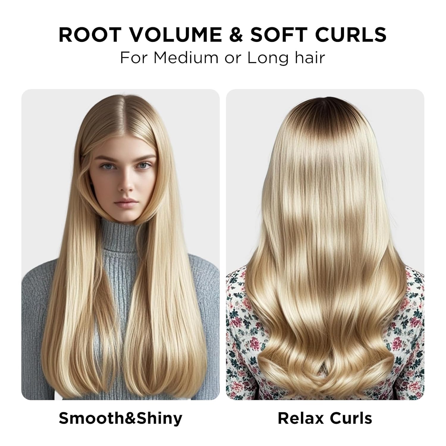 - Up to 50% Smoother Hair: The heated round brush will caress each strand of your hair with negative ions, locking in moisture and making your hair smoother, reducing frizz and tangles. A true ceramic styler and ion technology - which helps to effortlessly create smooth and long-lasting curls. (Green light means turning on the negative ions function. There is slightly current noise when is working fine. )