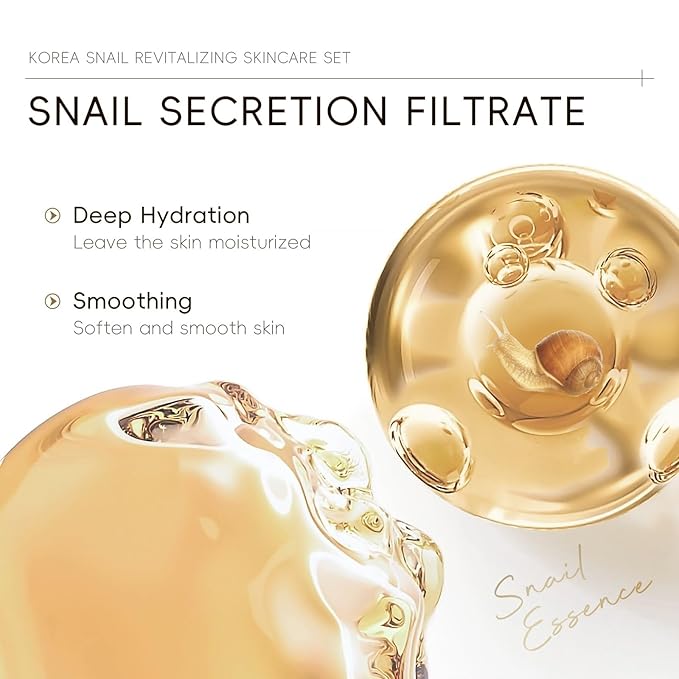 - 【Skin Care Set】——The Korean Snail Skincare suit contains a lot of snail secretion filtrate to help skin elasticity for a youthful and vibrant complexion. Our Beauty Gift Set can penetrate deep into the bottom layer of the skin, continuously replenish moisture to the skin, to achieve long-lasting moisturizing skin care effects,making the skin moist and soft