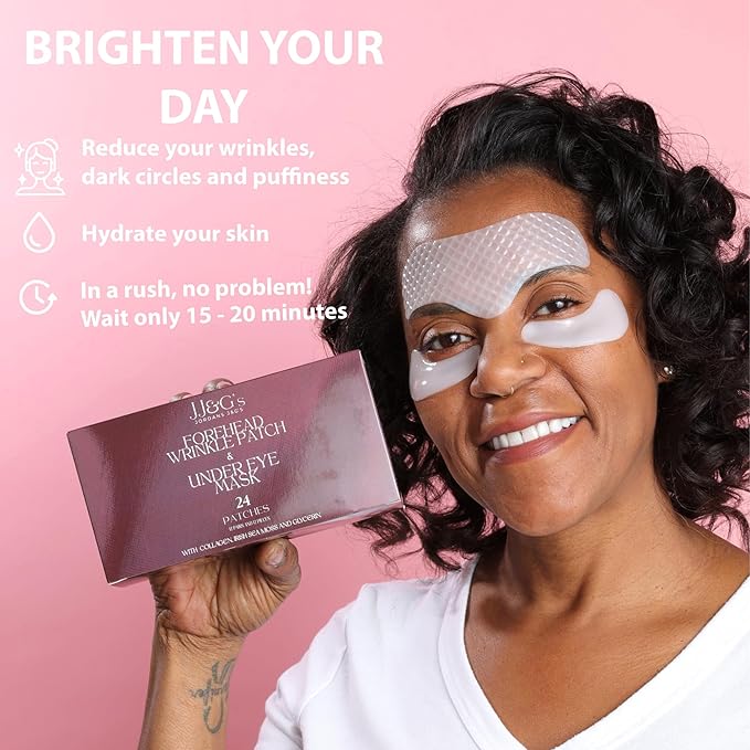 - ✅Treat your forehead wrinkles to a mini spa day with our anti wrinkle patches ~ There are 12 pairs of under-eye masks & 12 forehead wrinkle patches so 36 overall! Our innovative 2-in-1 set from JJ&G helps brighten, hydrate, cool, and smooth the skin while supporting anti-wrinkle benefits—perfect for a relaxing, rejuvenating experience at home.