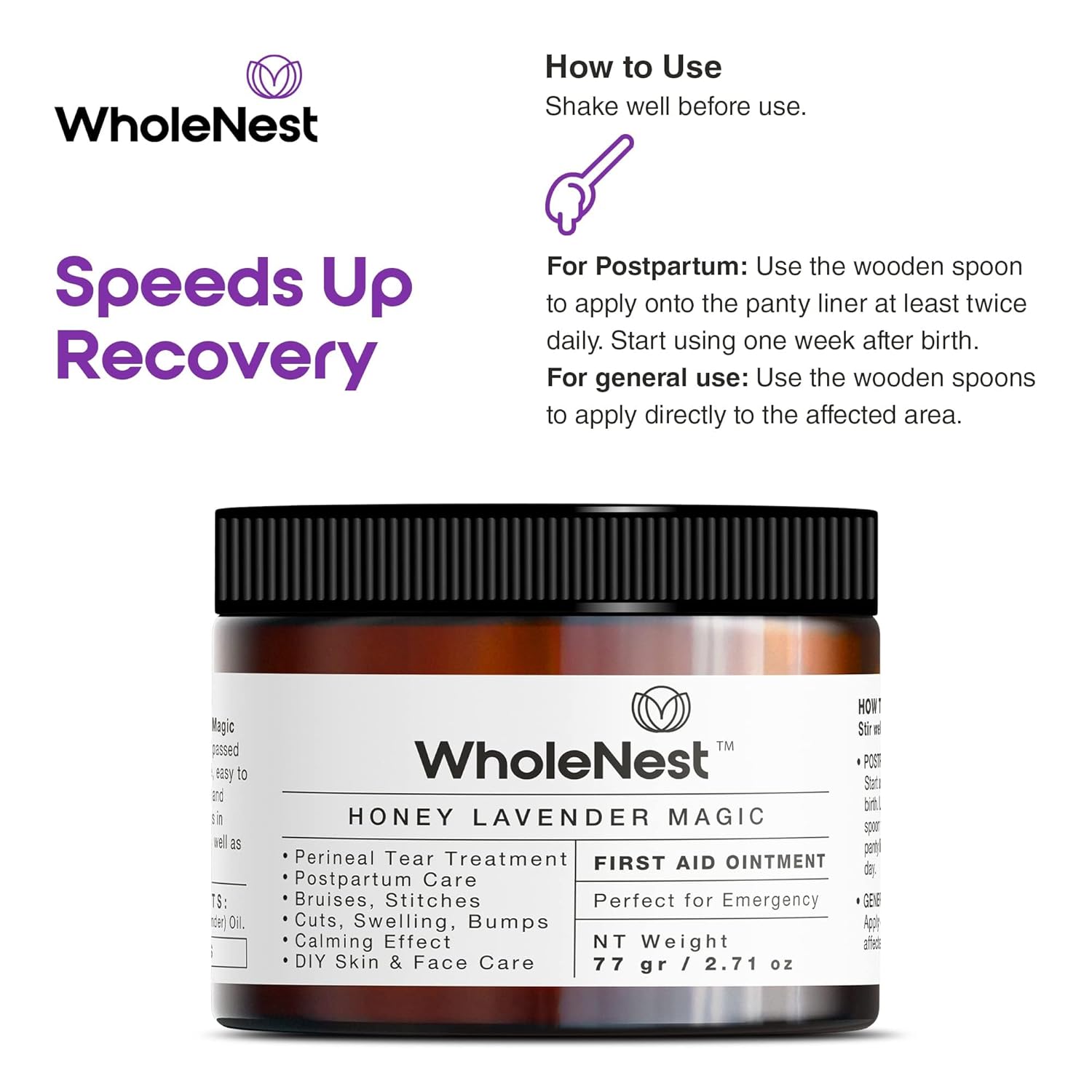 - NATURAL POSTPARTUM HEALING: The WholeNest Perineal Tear Recovery Kit features Wonder Spray with Witch Hazel and Honey Lavender Magic Balm, providing gentle relief for perineal tears, stitches, and scars with organic ingredients.