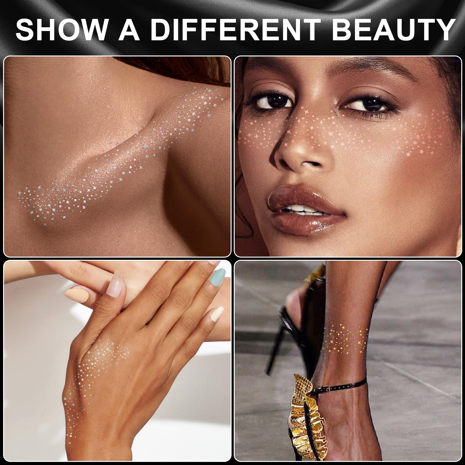 - ✨ HIGH-QUALITY GLITTER FRECKLES - Our glitter freckles face tattoos are crafted with meticulous attention to detail, ensuring top-notch quality. Made from premium materials, these glitter tattoos are gentle on all skin types, so you can enjoy beautiful, glowing skin without worrying about irritation or reactions.