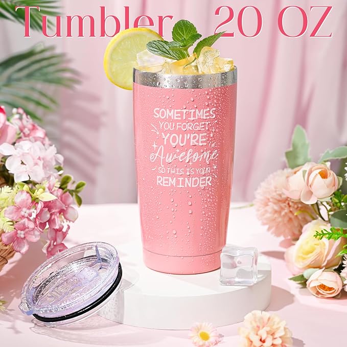 - Special Design: All items of the spa gift basket for women are designed with soft color and a bit light on the scents. A quote "Sometimes You Forget You are Awesome, So This is Your Reminder" is printed on the tumbler, which makes it a warm gift. There is a dried flower greeting card with enough space for you to write a personal blessing or appreciation
