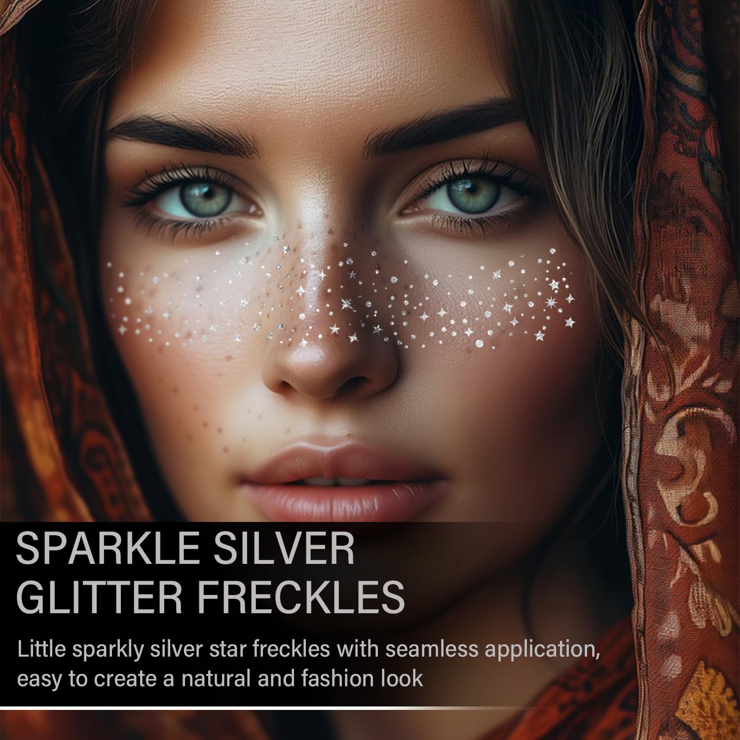 - Silver Glitter Freckles: Our glitter freckles face tattoo set contains 20 pieces silver glitter freckle patches, allow you to create a stunning, glittery look on your face for special occasions or festivals. Perfect for wearing in Halloween, Christmas, birthday parties, concerts, dances and shows!