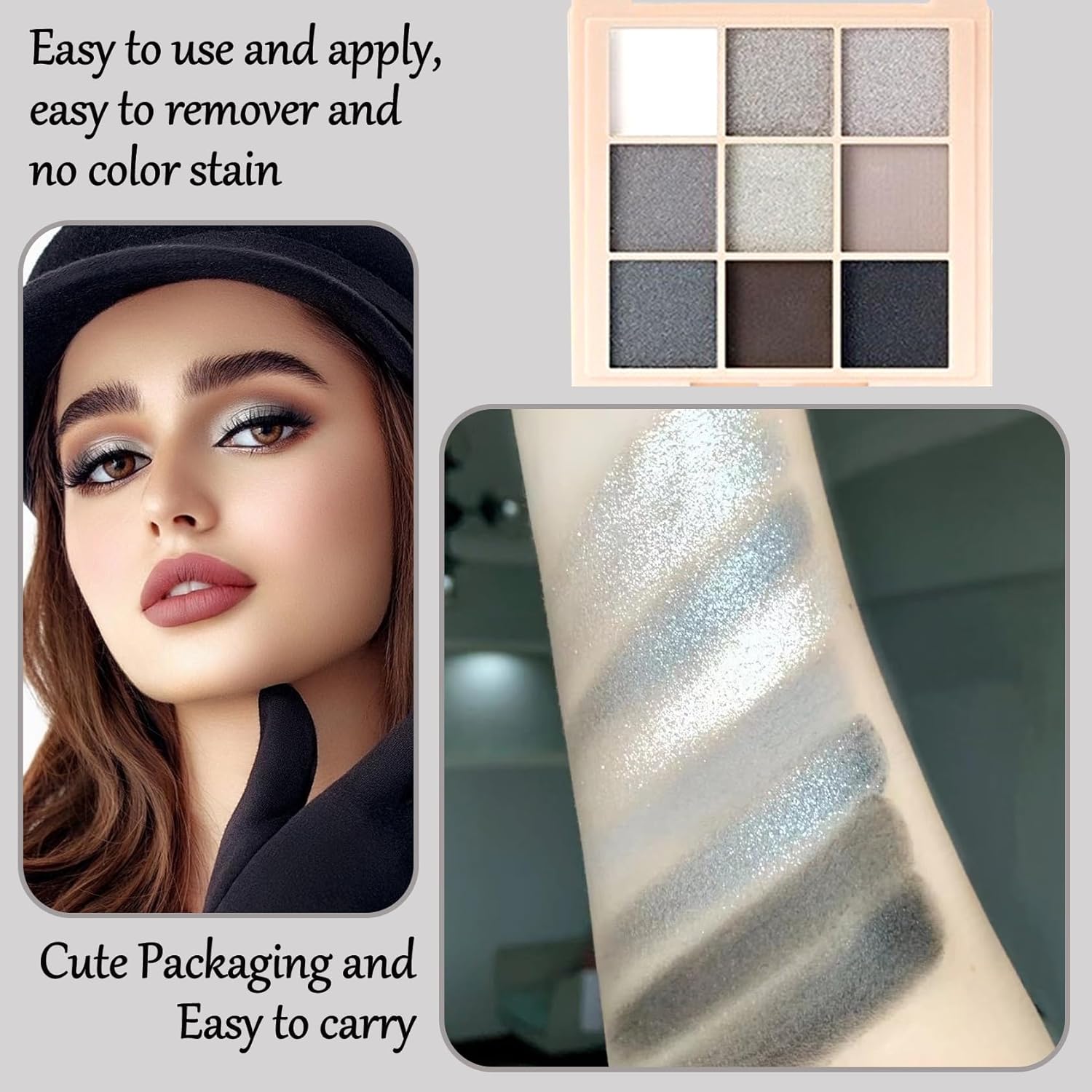 - 🥦【Ideal Gift】Makeup smoky eyeshadow palette is designed to be compact and portable, perfect for on-the-go use. It is a great choice for cool eye make-up and everyday eye make-up, as well as a perfect gift for ladies at parties, shows, proms, weddings and more.
