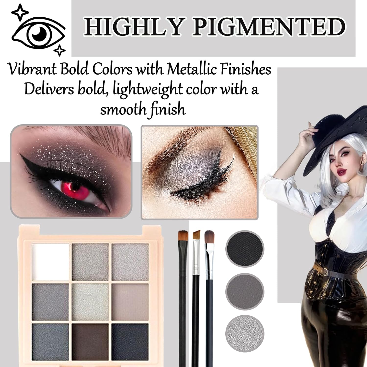 - 🥦【Waterproof and Long-lasting】Smokey goth eye shadow palette is specially formulated to be waterproof and not easily smudged, with strong adhesion that lasts all day long without removing make-up.