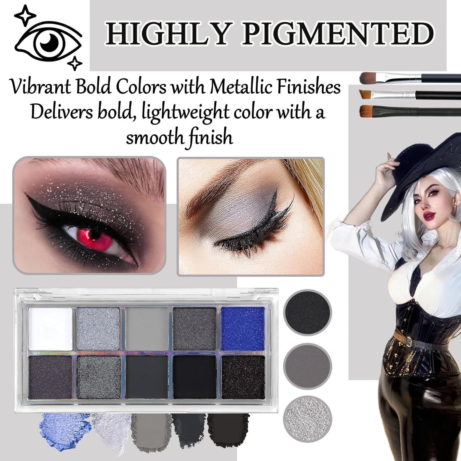 Black Grey Smoky Eyeshadow Palette,15 Colors Matte Shimmer Pigmented Eye Shadow Makeup Palette Set with 3 Eyeshadow Brushes,Glitter Eyeshadow Makeup Palette for Daily Halloween Goth Makeup(E)