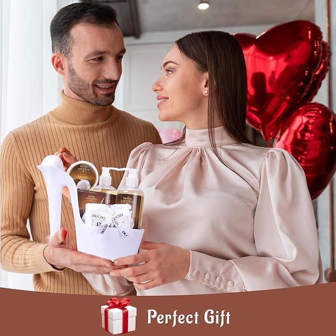 Draizee Mothers Day Gifts for Mom - Spa Gift Baskets for Women, 8 Pcs Luxury Coconut Scented Heel Shoe Design Bath and Body Spa Set-Self Care Package for Women, Presents for Mom, Body Care Set for Her