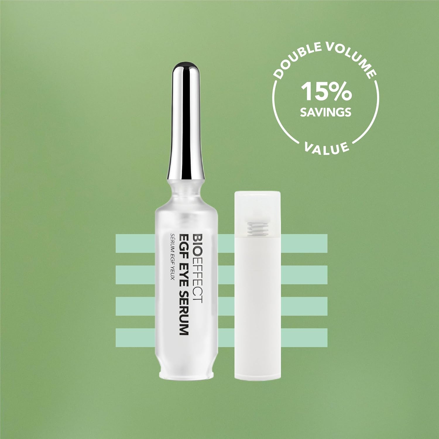 BIOEFFECT EGF Eye Serum Refill Set with Cooling Rollerball (6 ml) and One Refill Cartridge (6ml), Anti-Aging Corrective Gel with Hyaluronic Acid for Puffy Bags, Wrinkles, Fine Lines and Crows Feet