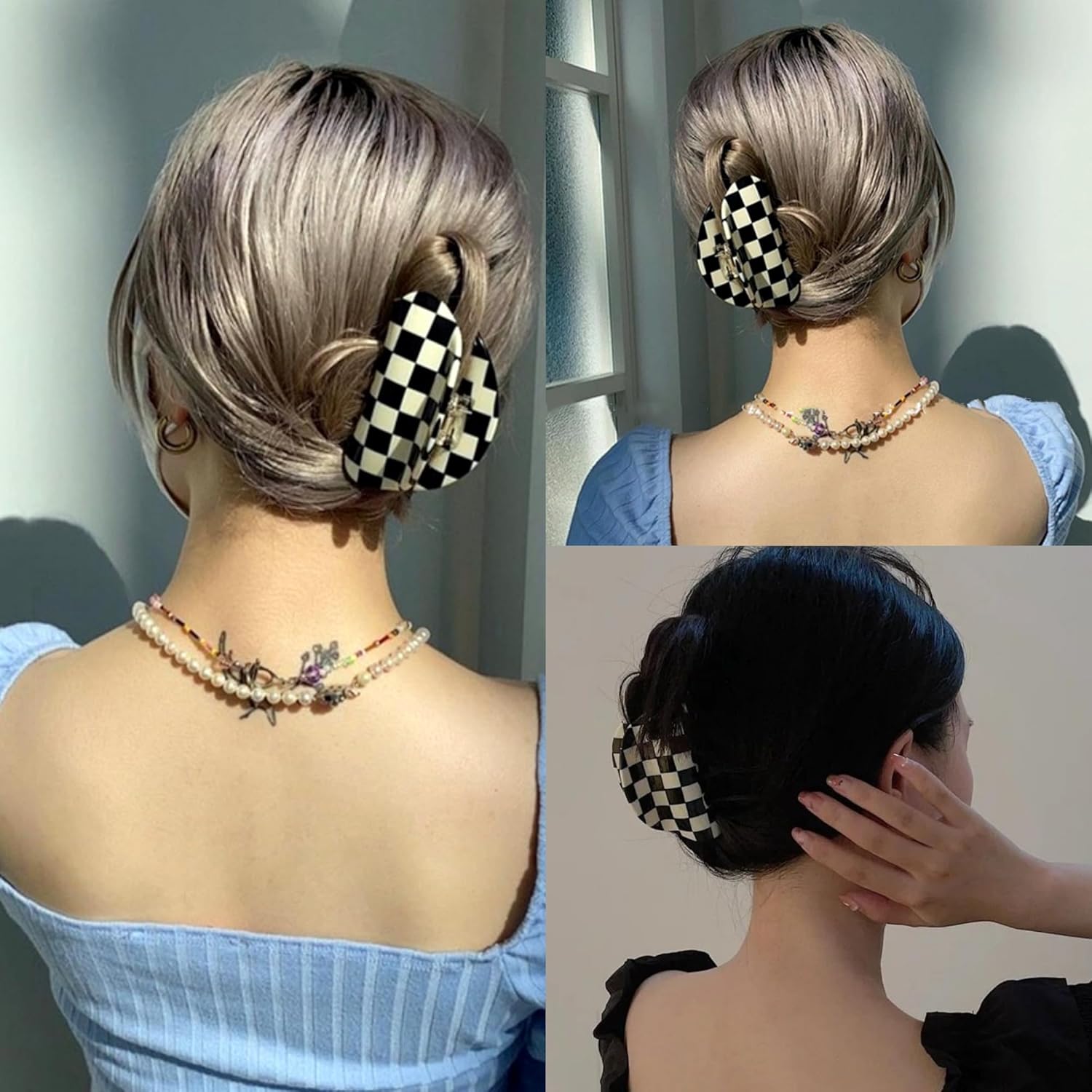 Checkered Hair Claw Clips, Acrylic Multicolored Semicircle Checker Barrettes for Women Ladies Medium Cute Non Slip Hair Jaw Clips Strong Hold Claw Clamps Hair Accessories for Thin Thick Hair (4 Pack)