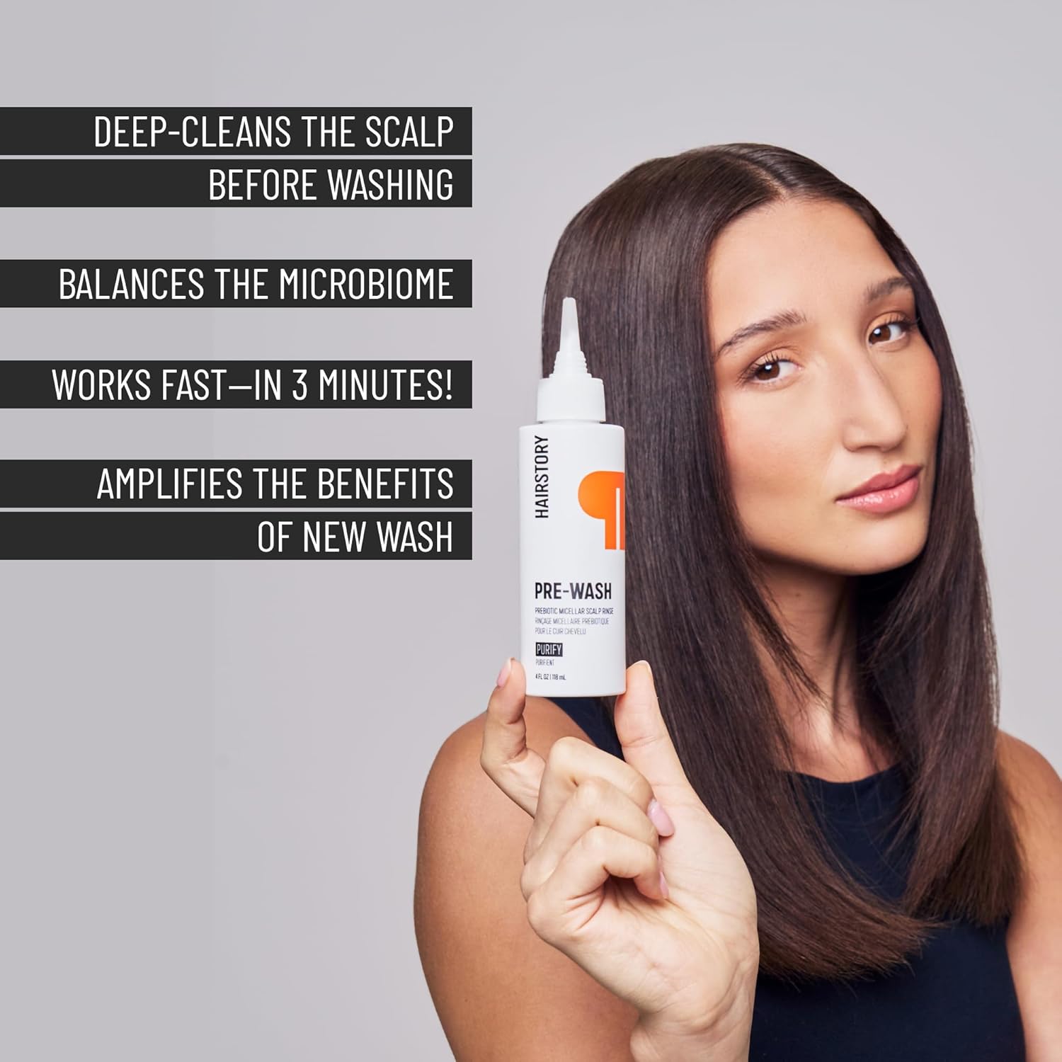 Hairstory Pre-Wash, Prebiotic Micellar Scalp Rinse, Refreshing Deep Clean for Hair, Removes Product Buildup, Oil & Dirt, Balances Scalp Microbiome, 4oz