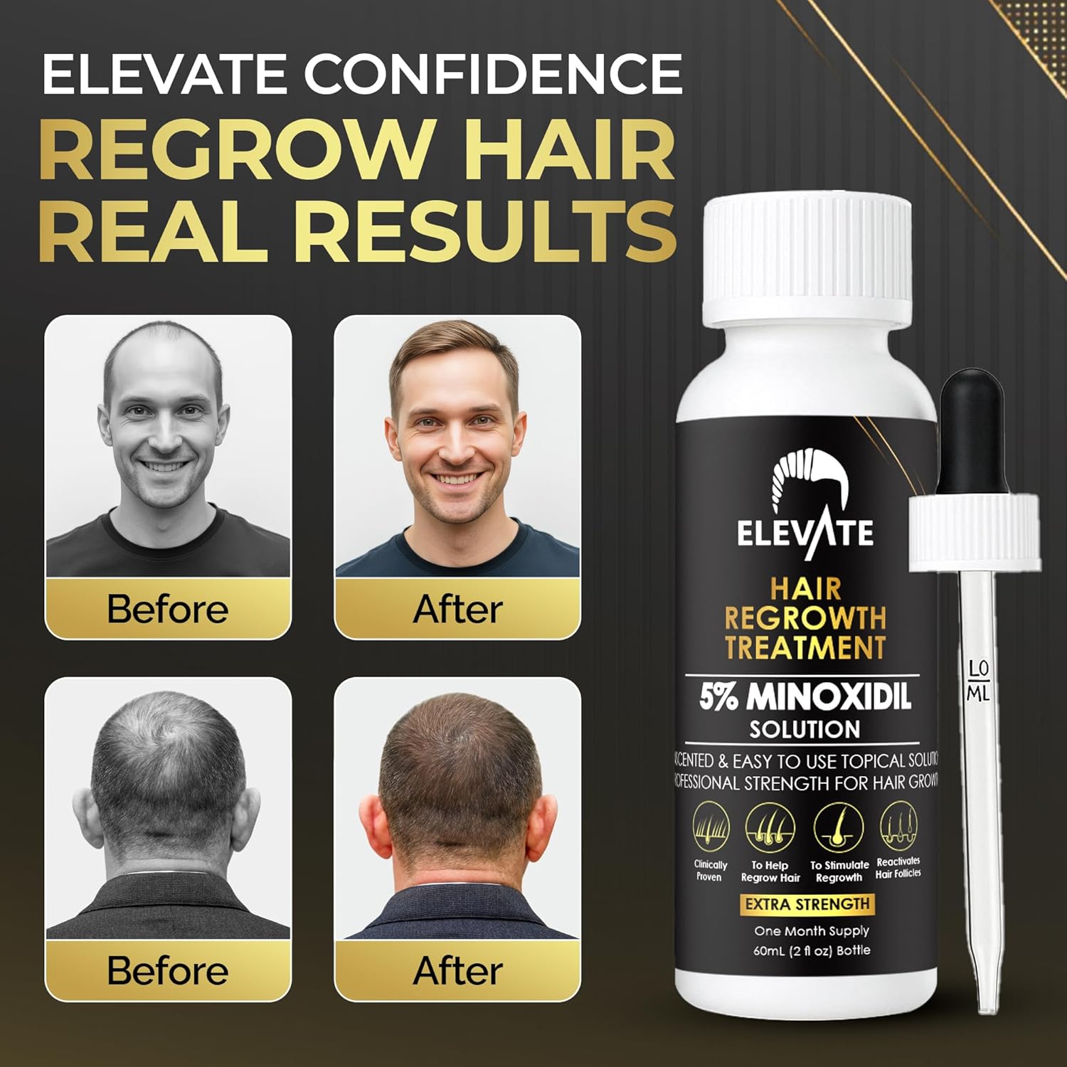 Elevate Hair Regrowth Treatment 5% Minoxidil Solution for Hair Growth - Extra Strength Topical Hair Growth Serum for Thicker, Fuller Hair 2 Fl Oz Made in USA