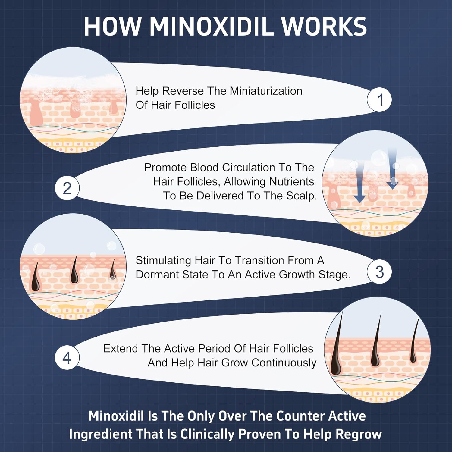 - SEE RESULTS IN AS LITTLE AS 12 WEEKS: Our 5% Minoxidil Foam utilizes advanced technology, infused with biotin and castor oil, For hair and beard growth. Experience the transformative power of minoxidil as it reactivates hair follicles and stimulates regrowth with noticeable results in 3-6 months.