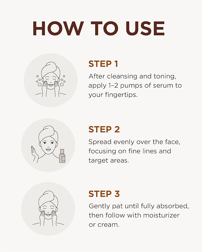 - HOW TO USE – Dispense 1-2 pumps after cleansing and toning, both morning and evening. Apply evenly over the face and focus on areas with fine lines, such as around the eyes and forehead. Pat gently until fully absorbed.